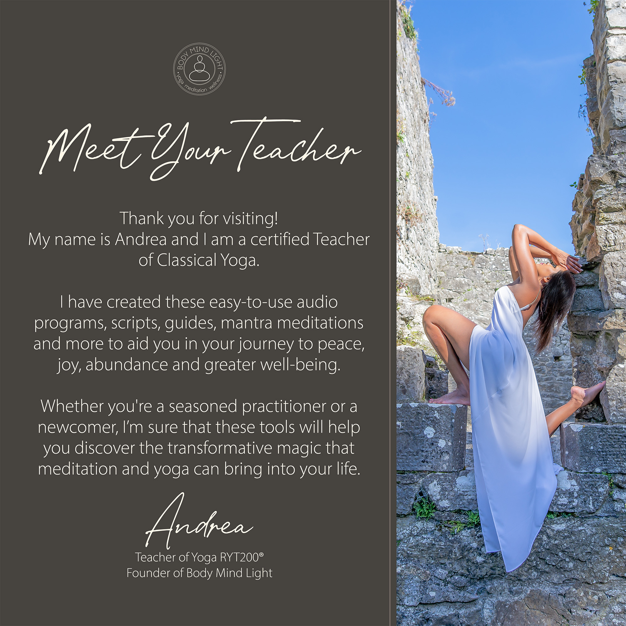 The content and techniques presented within this product are intended for your personal use and informational purposes only. It is not a substitute for medical advice. Please consult with your physician and obtain full medical clearance before practicing this exercise, yoga, pranayama or any other exercise.